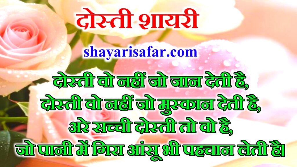 Dosti Shayari 2026 : हेलो दोस्तों आप सभी को मेरे वेबसाइट shayarisafar.com में स्वागत है आज हम आपके लिए दोस्ती शायरी लेकर आए हैं अगर आपका भी कोई दोस्त है तो उसके पास यह दोस्ती शायरी जरूर शेयर कीजिएगा |