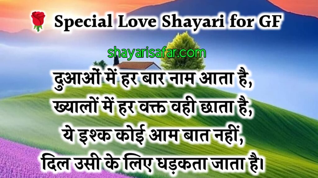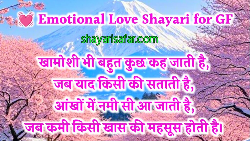प्यार का रिश्ता शब्दों से और भी गहरा हो जाता है। जब दिल की बात सीधे शायरी में कही जाती है, तो उसका असर कई गुना बढ़ जाता है। अगर आप अपनी GF को स्पेशल महसूस कराना चाहते हैं, तो यह आर्टिकल आपके लिए परफेक्ट है।